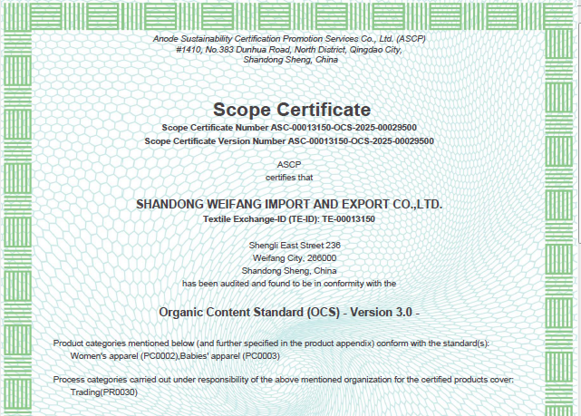 公司自營和代理服裝、食品、五金、化工、機電等各類商品及技術的進出口業(yè)務,公司有專門的生產、加工基地,并通過了Oeko - Tex Standard 100、GRS、OCS、RCS、USCTP等多項認證,可以按客戶要求設計生產,同時承辦中外合資經營、合作生產、開展“三來一補”以及技術輸出、易貨、邊境貿易等業(yè)務。公司產品出口到日本、法國、俄羅斯等50多個國家或地區(qū)。